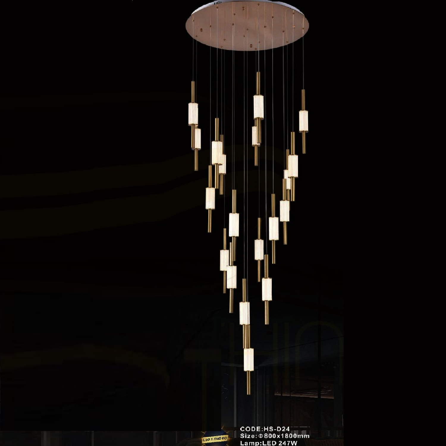 5. CODE: HS - D31: Đèn thả thanh ống đèn LED - KT: Ø800mm x H1800mm - Đèn LED 247W ánh sáng đổi 3 màu