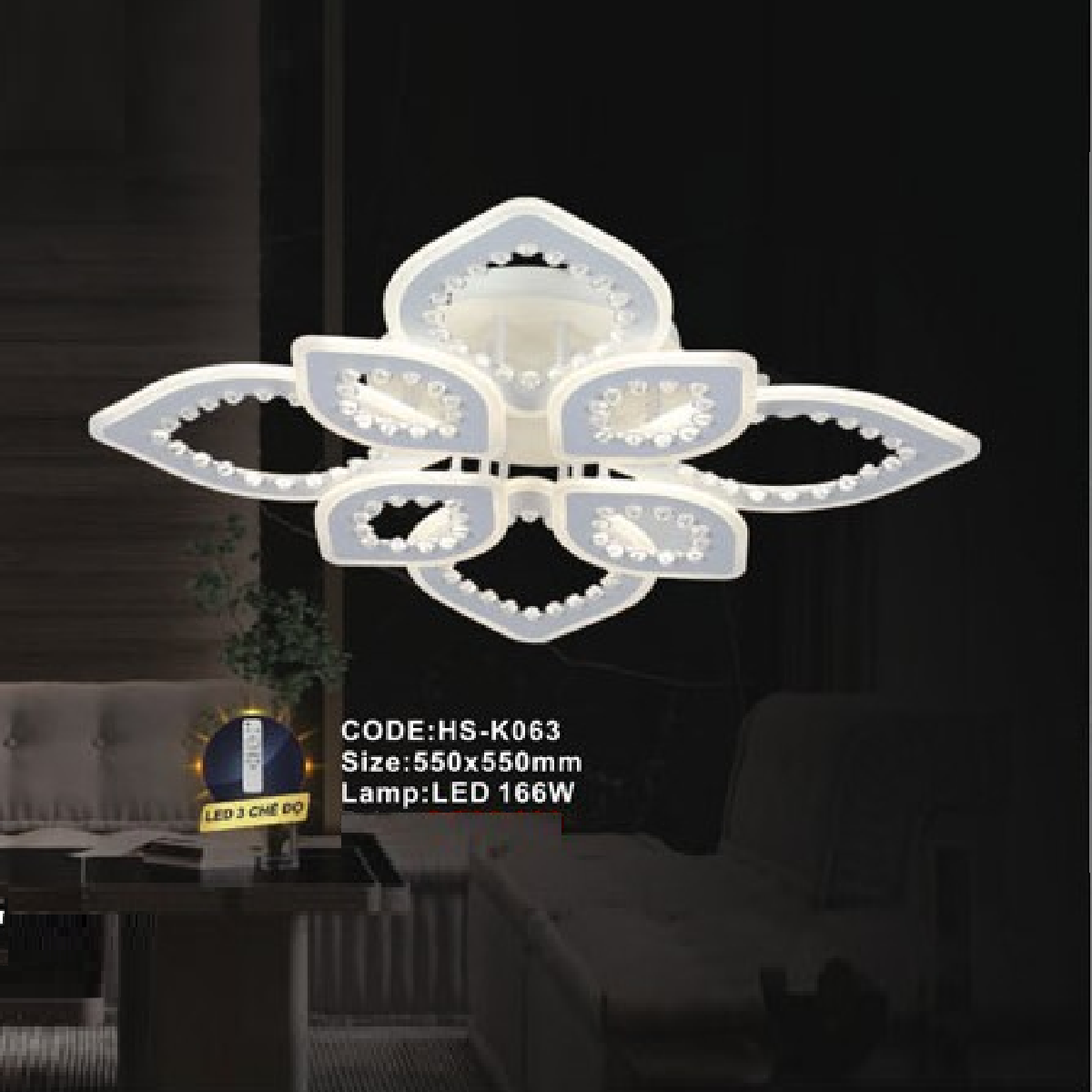 • Sản phẩm: CODE: HS - K063: Đèn áp trần LED Mica - KT: 550mm x 550mm - Đèn LED 166W ánh sáng đổi 3 màu