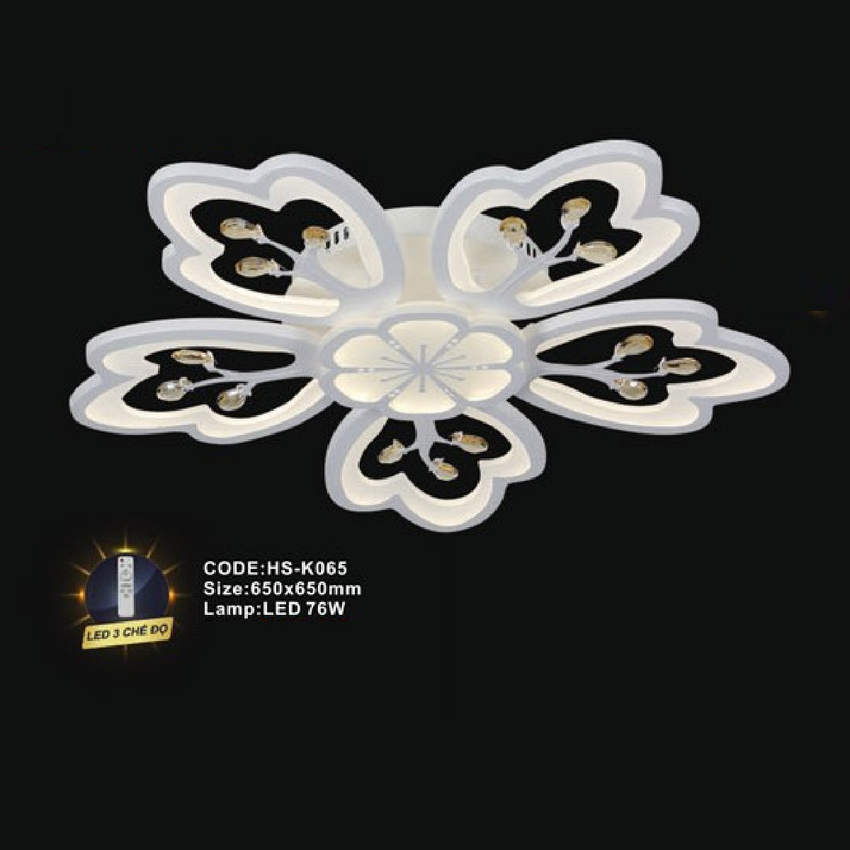 • Sản phẩm: CODE: HS - K065: Đèn áp trần LED Mica - KT: 650mm x 650mm - Đèn LED 76W ánh sáng đổi 3 màu