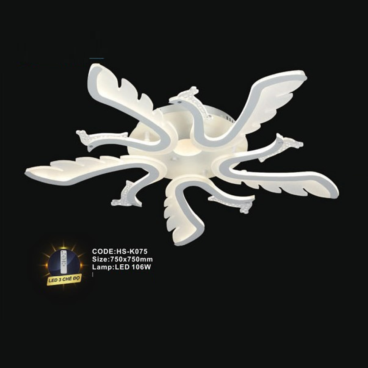 CODE: HS - K075: Đèn áp trần LED Mica - KT: 750mm x 750mm - Đèn LED 106W ánh sáng đổi 3 màu