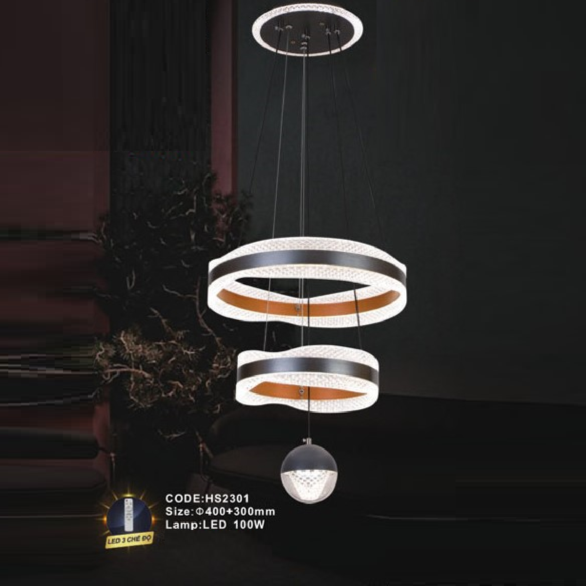 - Sản phẩm: CODE: HS2301: Đèn thả 2 vòng LED Mica - KT: Ø(400+300)mm - Đèn LED 100W ánh sáng đổi 3 màu