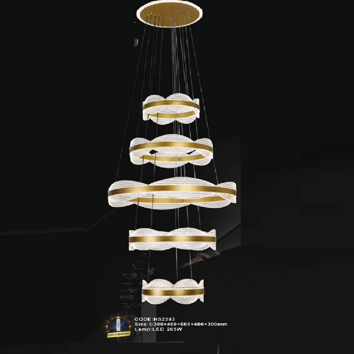 • Sản phẩm: CODE: HS2303: Đèn thả 5 vòng LED - KT: Ø(300+400+600+400+300)mm - Đèn LED 265W ánh sáng đổi 3 màu