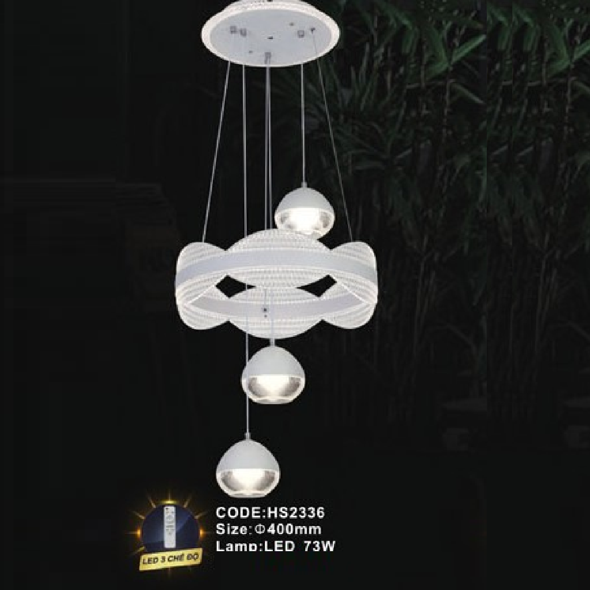 5. CODE: HS2336: Đèn thả LED - KT: Ø400mm - Đèn LED 73W ánh sáng đổi 3 màu