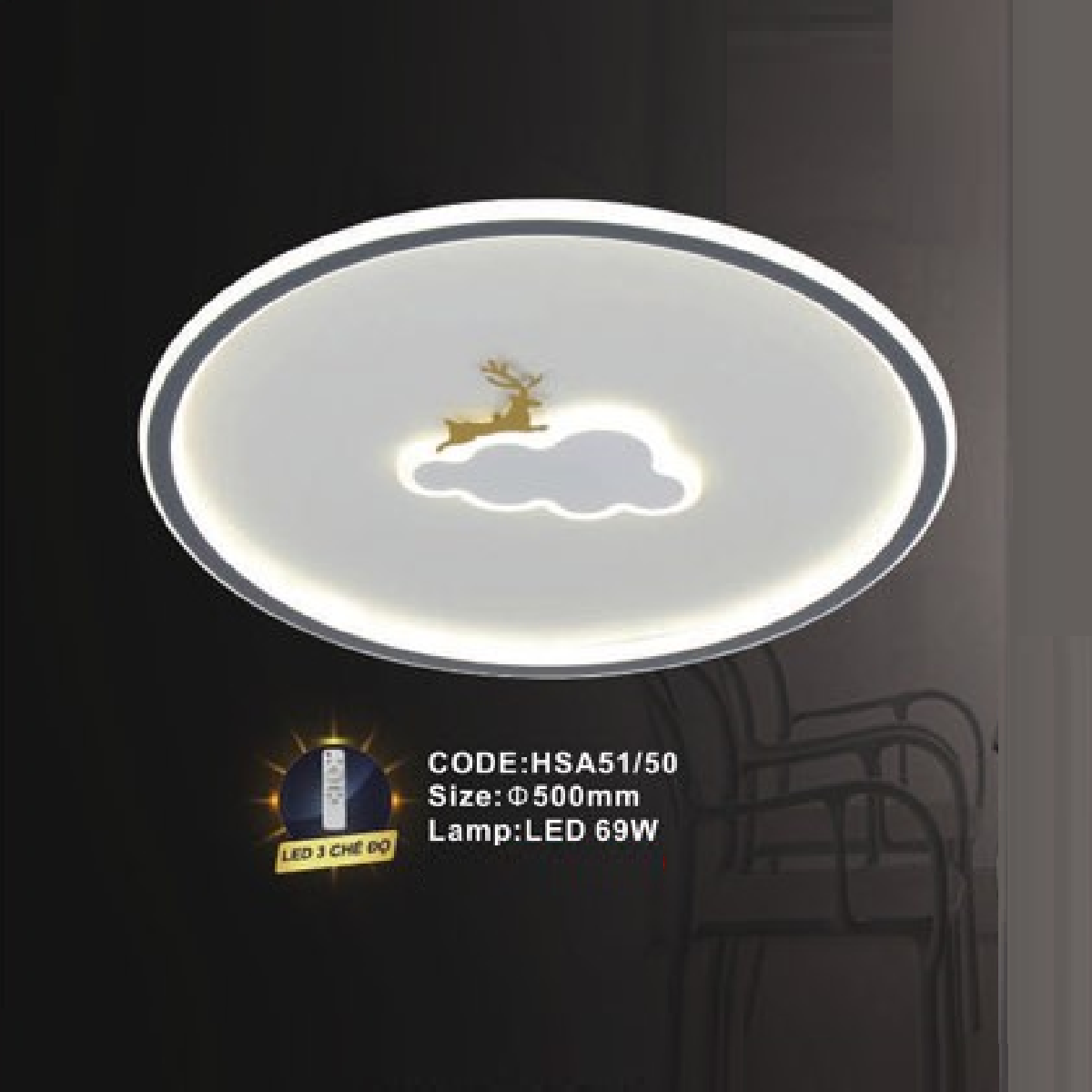 5. CODE: HSA51/50: Đèn áp trần LED - KT: Ø500mm - Đèn LED 69W ánh sáng đổi 3 màu