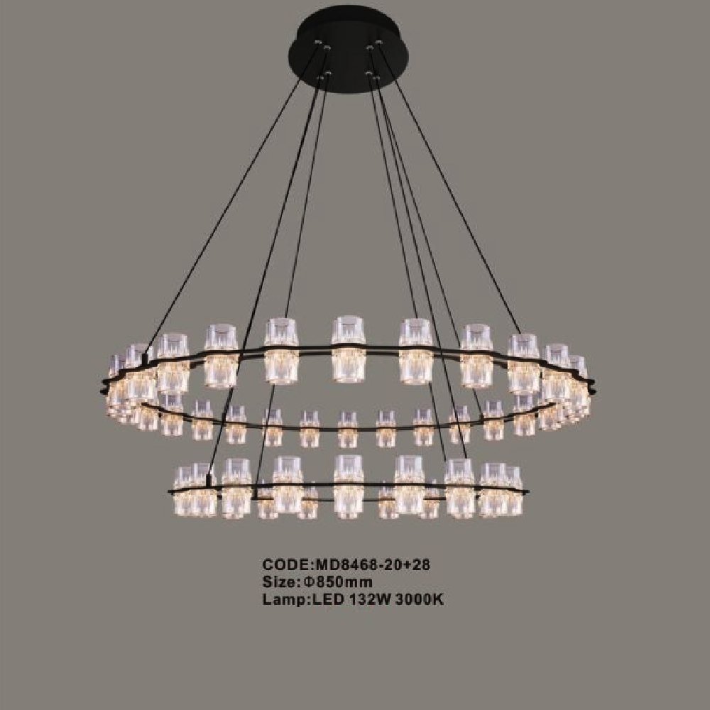 • Sản phẩm: CODE: MD8468 - 20+28: Đèn thả 2 vòng LED - KT: Ø850mm - Đèn LED 132W ánh sáng vàng 3000K