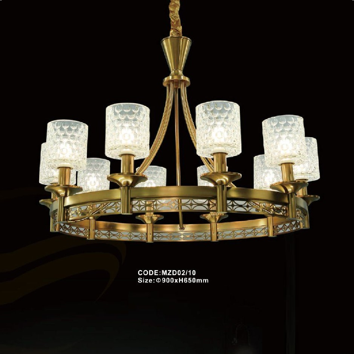 - Sản phẩm: CODE: MZD02/10: Đèn chùm thả 10 bóng, chao thủy tinh - KT: Ø900mm x H650mm - Đèn LED
