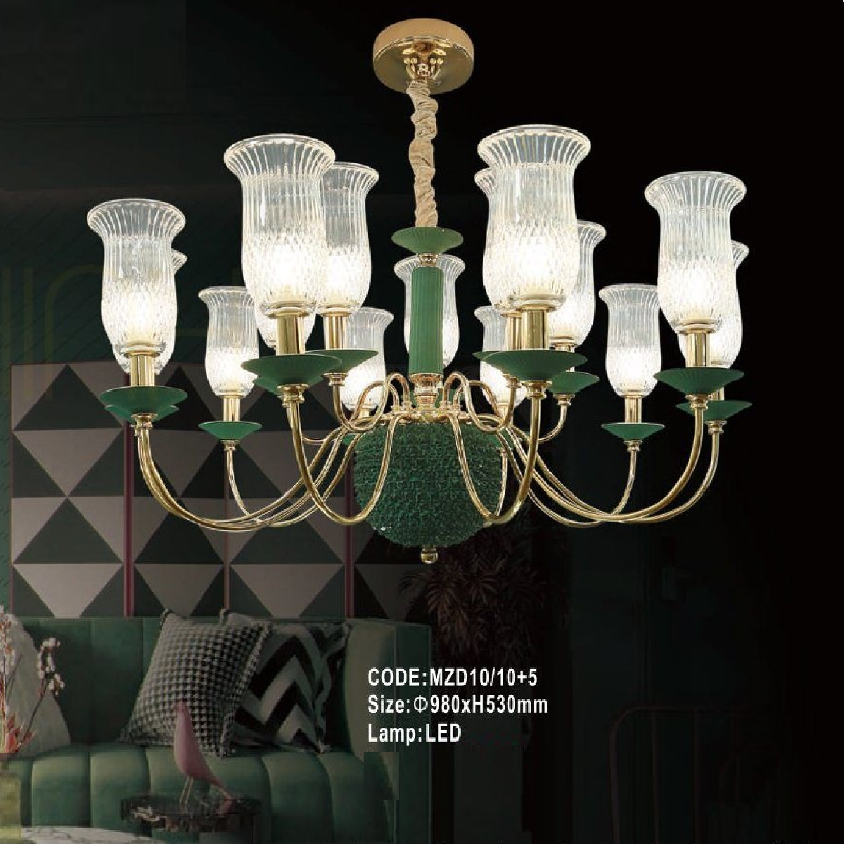 - Sản phẩm: CODE: MZD10/10+5: Đèn chùm 15 tay, chao thủy tinh - KT: Ø980mm x H530mm - Đèn LED