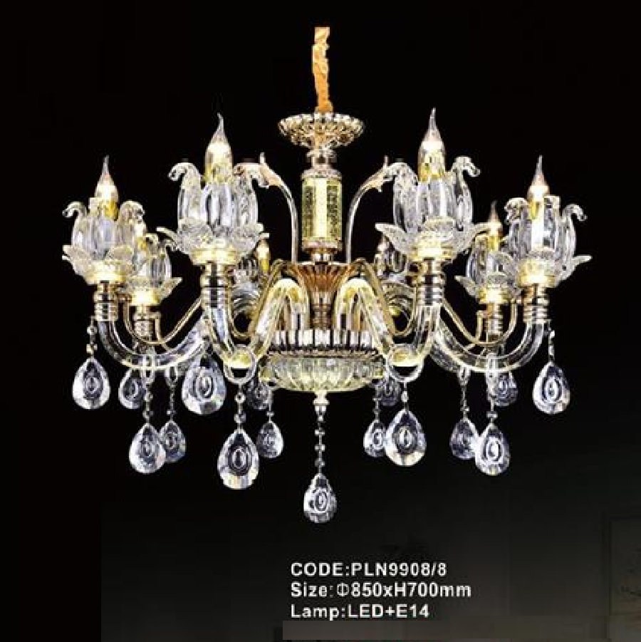 - Sản phẩm: CODE: PLN9908/8: Đèn chùm nến 8 tay - KT: Ø850mm x H700mm - Đèn nến chân E14 x 8 + Đèn LED