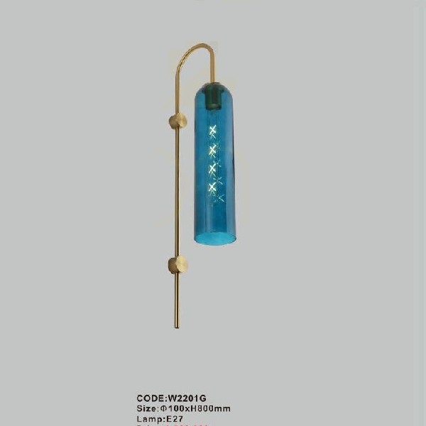 - Sản phẩm: CODE: W2201G: Đèn gắn tường chao thủy tinh màu - KT: Ø100mm x H800mm - Đèn E27 x 1 bóng