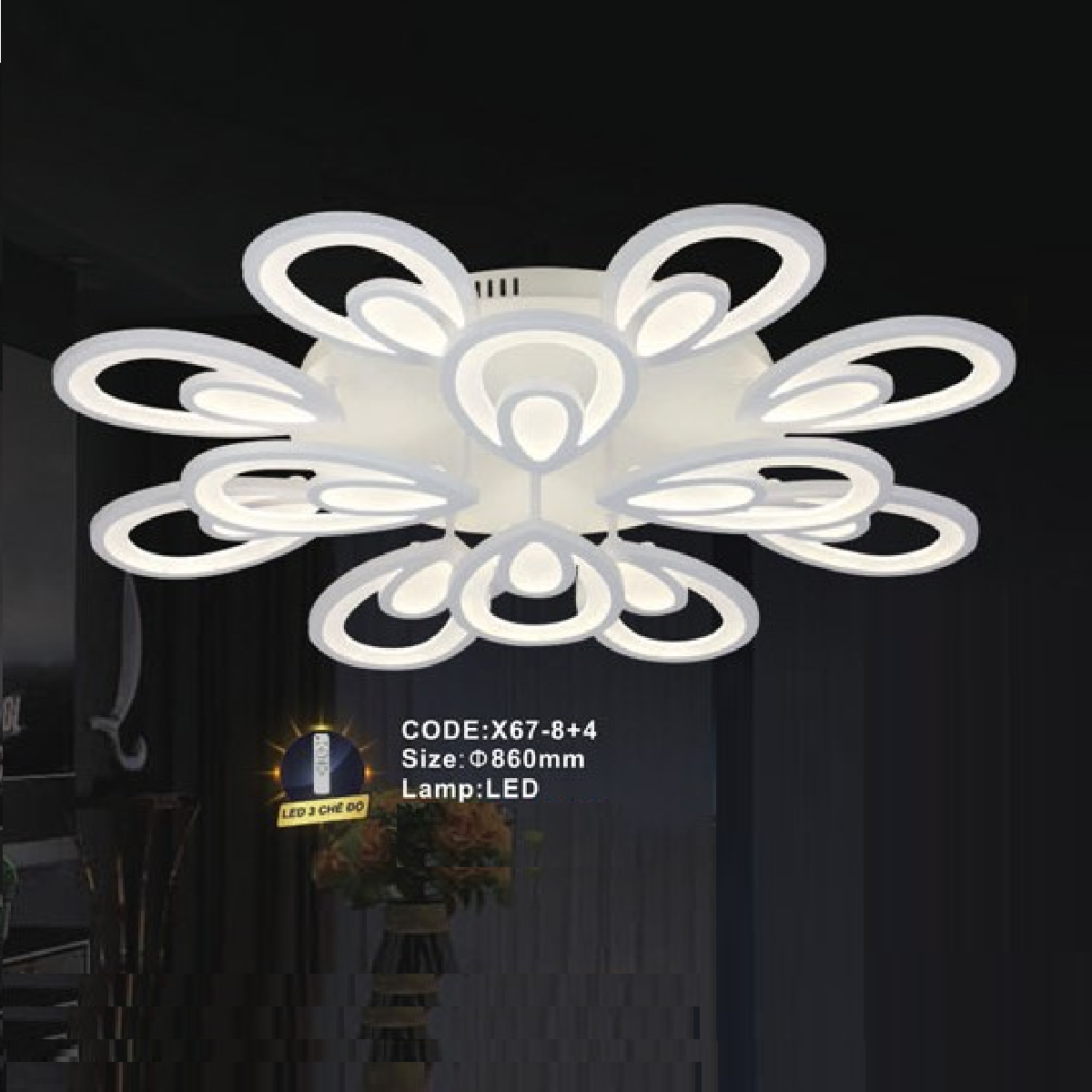 - Sản phẩm: CODE: X67- 8+4: Đèn áp trần LED Mica 12 cánh - KT: Ø860mm - Đèn LED đổi 3 màu