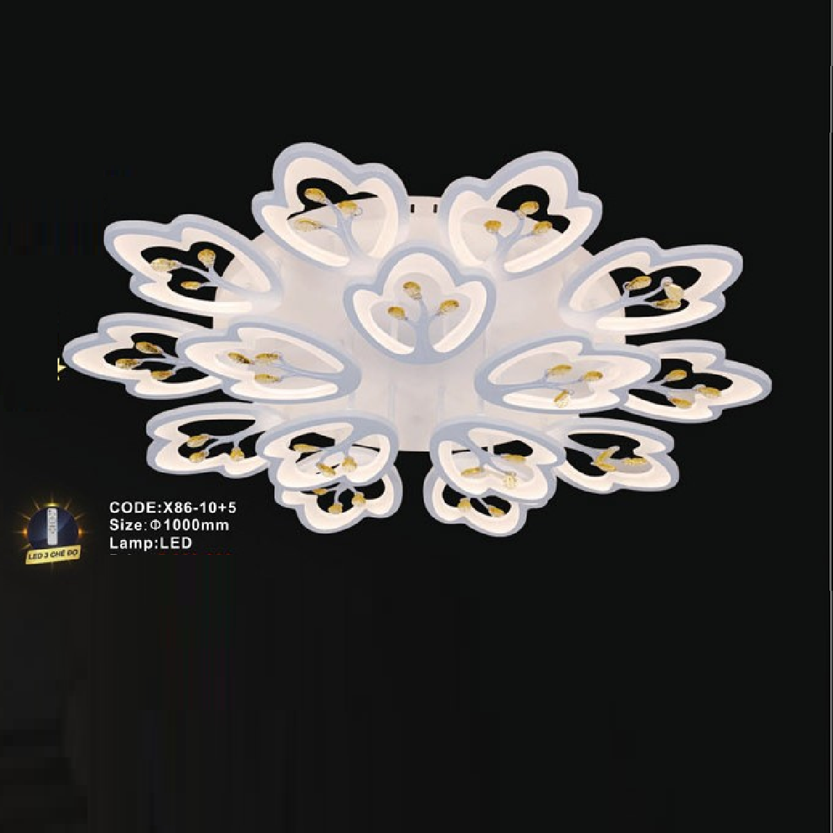 - Sản phẩm: CODE: X86-10+5: Đèn áp trần LED Mica 15 cánh - KT: Ø1000mm - Đèn LED đổi 3 màu