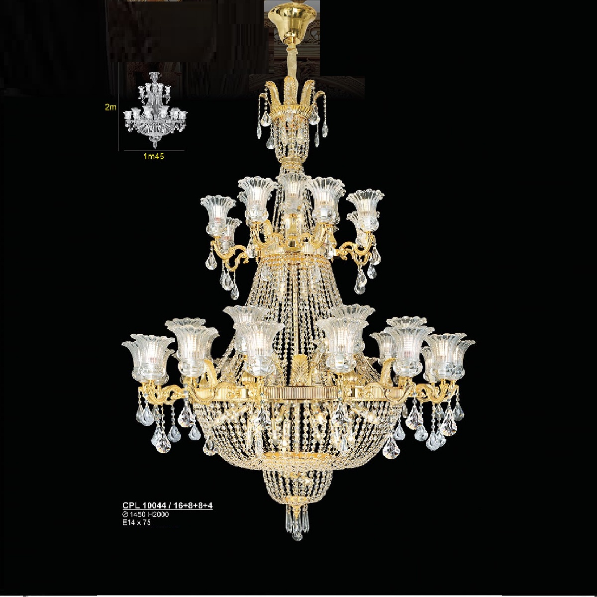 - Sản phẩm: CPL 10044/16+8+8+4: Đèn chùm Phale chao thủy tinh 36 tay - KT: Ø1450mm x H2000mm - Bóng đèn chân E14 x 75 bóng