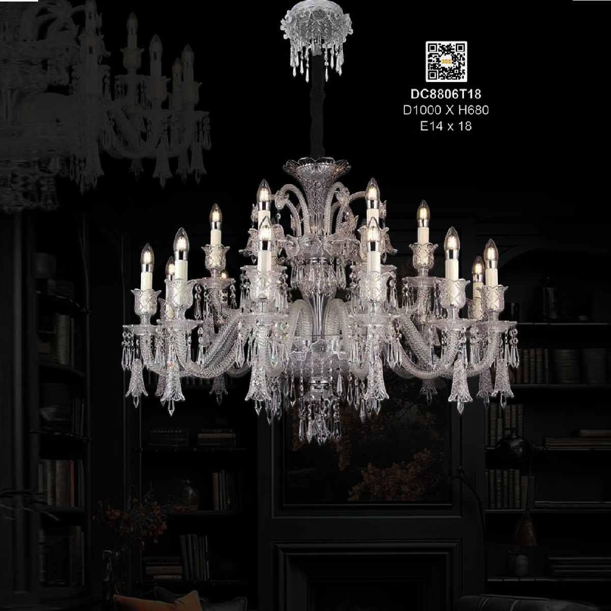 - Sản phẩm: DC8806T18: Đèn chùm Phale nến 18 tay - KT: Ø1000mm x H680mm - Bóng đèn nến E14 x 18 bóng