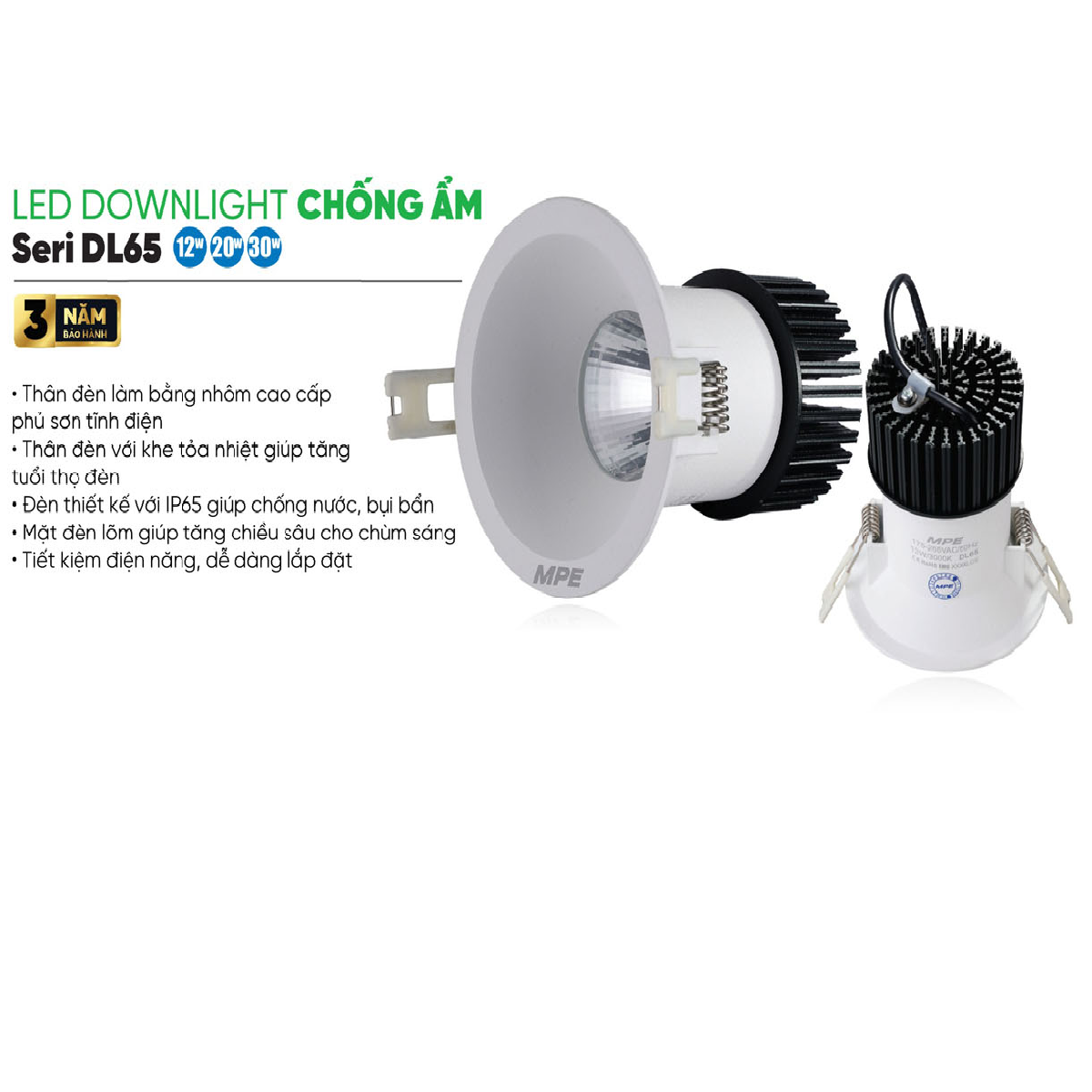 • Sản phẩm: DL65 - 30V: Đèn LED âm trần chống ẩm 30W ánh sáng vàng