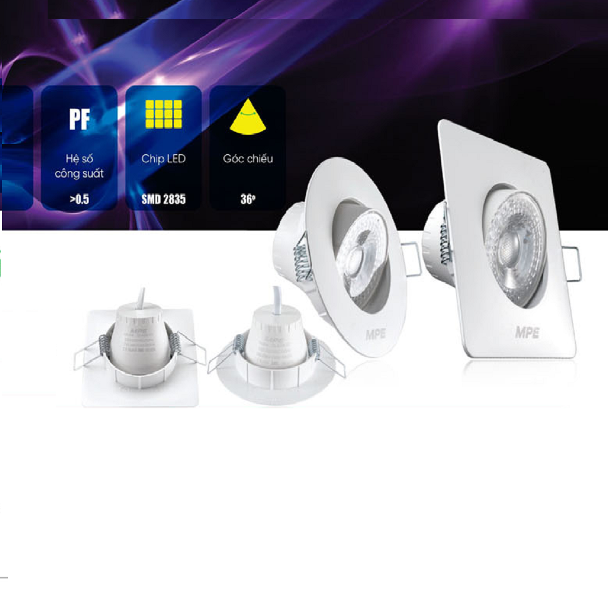 - Sản phẩm: DLA2S - 5T: Đèn LED âm trần vuông điều chỉnh hướng sáng 5W