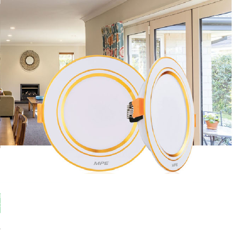 - Sản phẩm: DLV2-9/3C: Đèn LED âm trần viền vàng 9W đổi màu