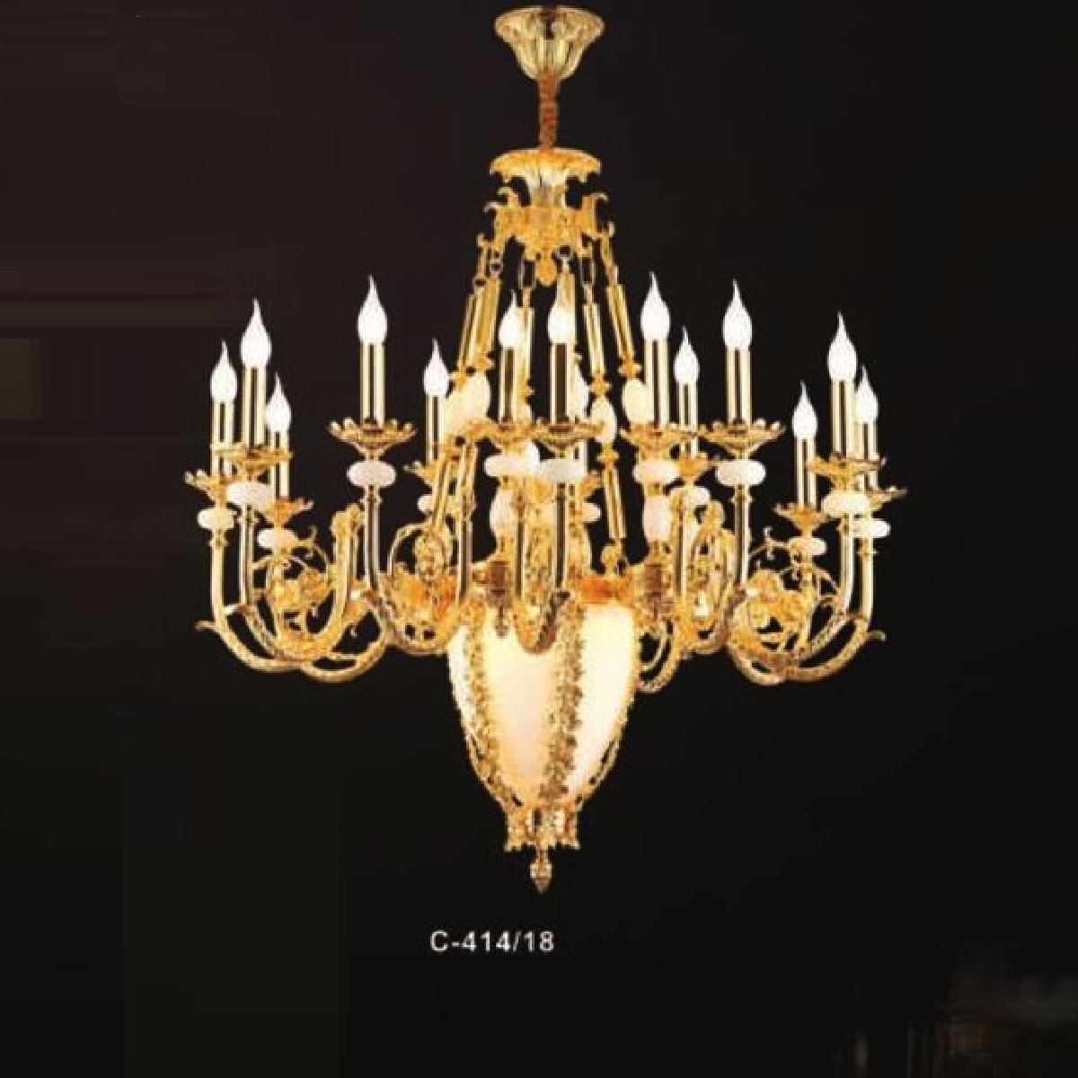E - C - 414/18: Đèn chùm nến 18 tay chao đáy thủy tinh - KT: Ø1020mm x H1000mm + 500mm - Bóng đèn nến E14 x 18 bóng