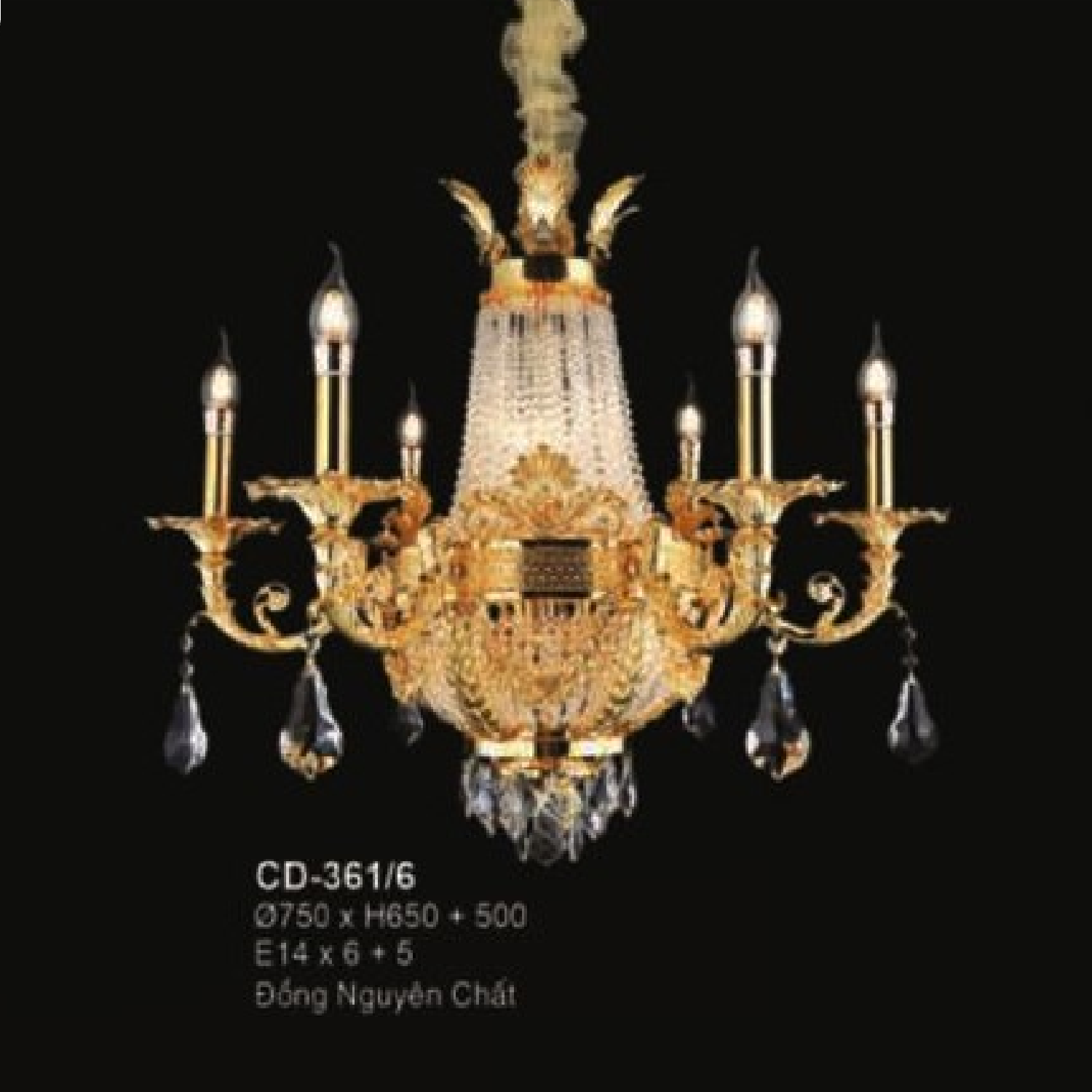 • Sản phẩm: E - CD - 361/6: Đèn chùm đồng nguyên chất mạ vàng 24K phale K9 - KT: Ø750mm x H650mm +500mm - Bóng đèn E14 x 11 bóng