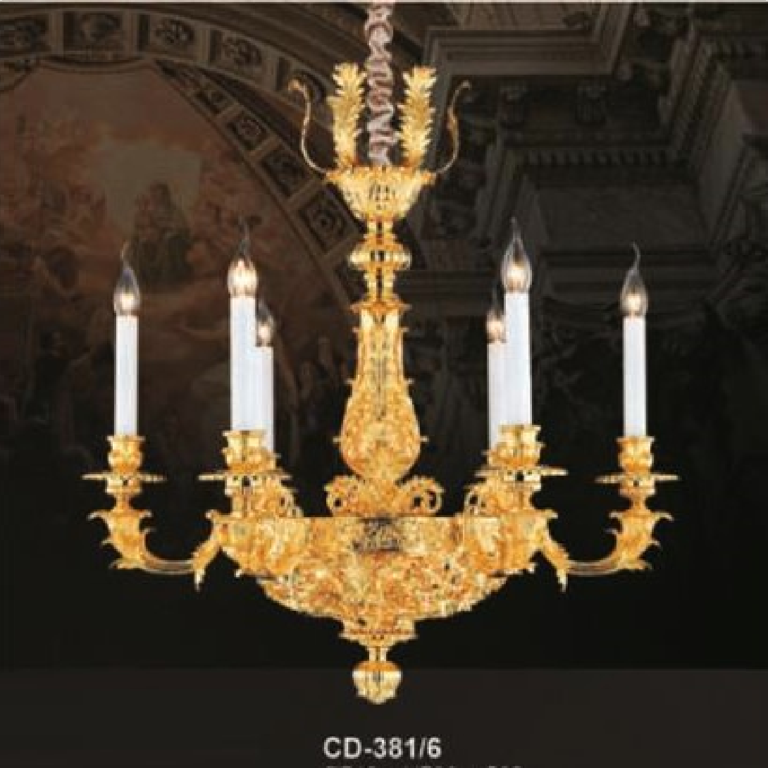 5. E - CD - 381/6: Đèn chùm nến 6 tay - KT: Ø740mm x H790mm + 500mm - Bóng đèn E14 x 9 bóng