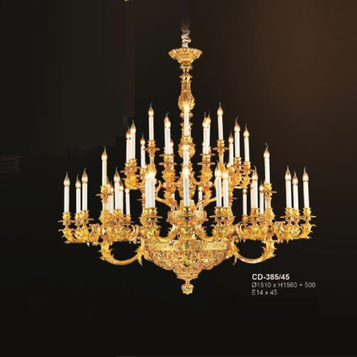 - Sản phẩm: E - CD - 385/45: Đèn chùm nến 45 tay - KT: Ø1510mm x H1560mm + 500mm - Bóng đèn E14 x 45 bóng