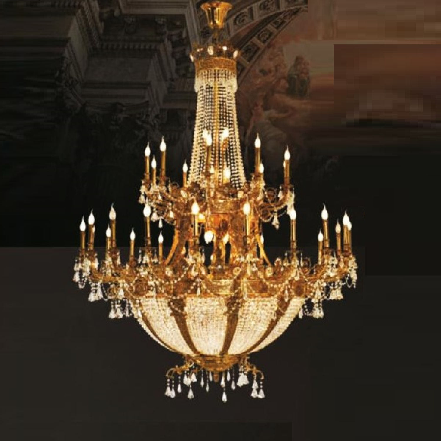 • Sản phẩm: E - CD - 389: Đèn chùm đồng phale nến - KT: Ø1200mm x H1300mm + 500mm - Bóng đèn nến E14 x 30 bóng