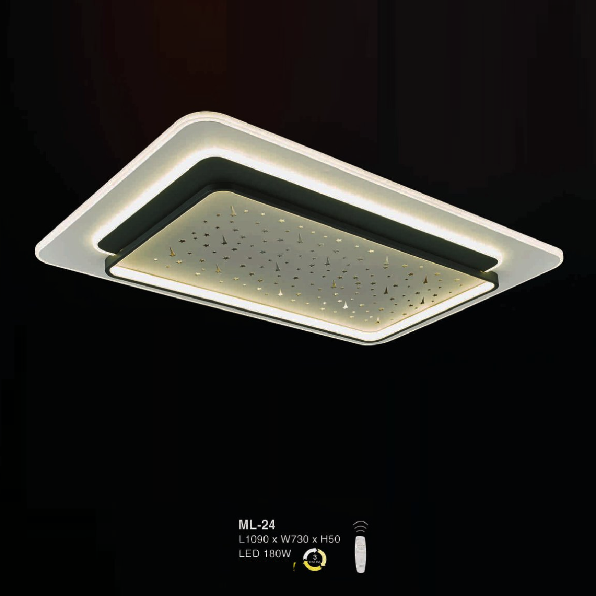 E - ML - 24: Đèn áp trần LED chữa nhật - KT: L1090mm x W730mm x H50mm  - Đèn LED 180W  ánh sáng đổi 3 màu - Remote