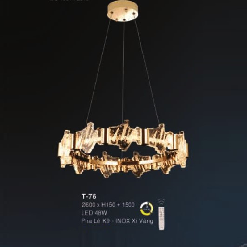 - Sản phẩm: E - T - 76: Đèn thả 1 vòng LED Phale - KT: (Ø600mm x H150mm) x H1500mm - Đèn LED 48W - Ánh sáng đổi 3 màu