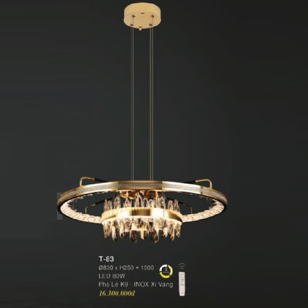 - Sản phẩm: E - T - 83: Đèn thả vòng LED gắn rời - KT: Ø830mm x H250mm x H1500mm - Đèn LED 80W - Ánh sáng đổi 3 màu