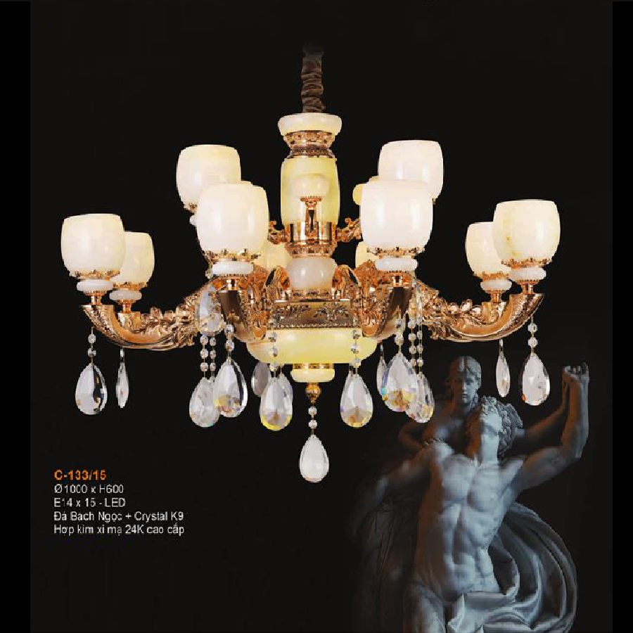 5. E - C - 133/15: Đèn chùm 15 tay - KT: Ø1000mm x H600mm - Bóng đèn chân E14 x 15 bóng + Đèn LED