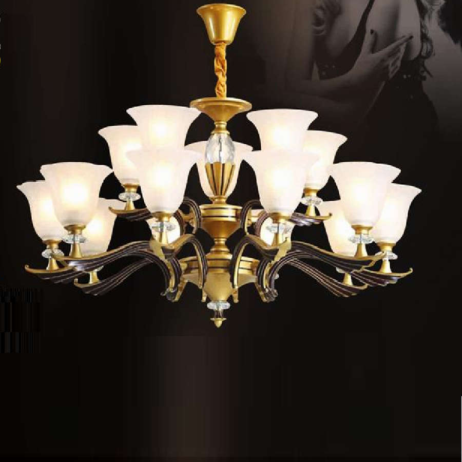 CODE: 9830 - 15: Đèn chùm đồng chao đá 15 tay - KT: Ø1000mm x H600mm - Bóng đèn chân E14 x 15 bóng