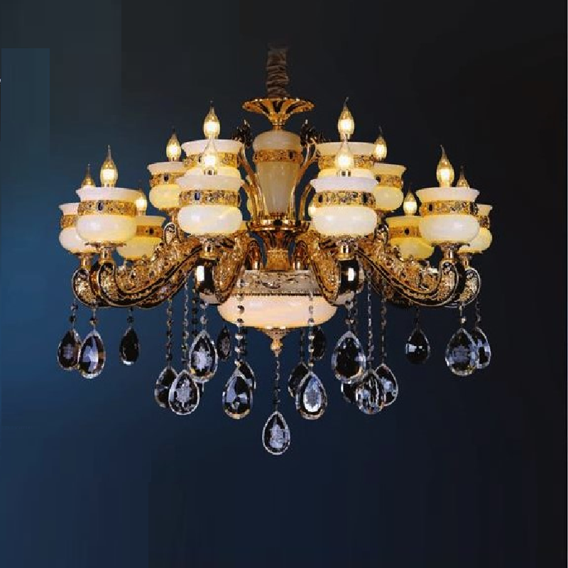 - Sản phẩm: E - C-129/15: Đèn chùm 15 tay chao đá bạch ngọc - KT: Ø1000mm x H750mm - Bóng đèn E14 x 15 bóng + Đèn LED