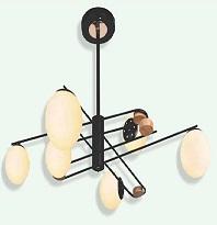 HF - TNT 216/8Đ: Đèn chùm 8 tay, choá đèn hợp kim sơn đen, KT: Ø930mm*H1000mm
