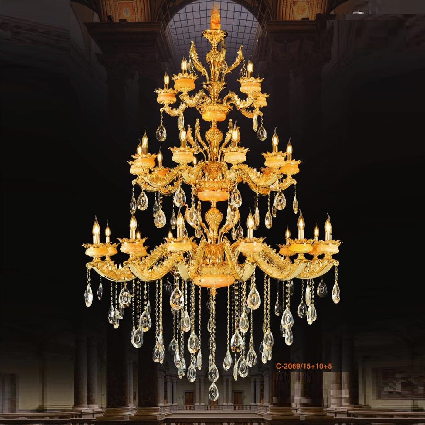 - Sản phẩm: E - C - 2069/15 +10+5: Đèn chùm nến 30 tay chao đá - KT: Ø1500mm x H2000mm - Bóng đèn E14 x 30 bóng