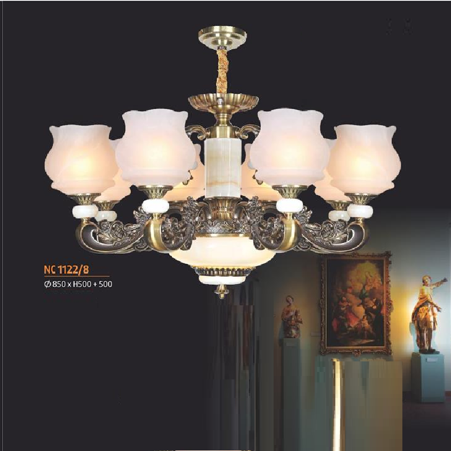 NC 1122/8: Đèn chùm 8 tay -  KT: Ø850mm x H500mm + 500mm - Đèn chân E27 x 8 bóng + Đèn LED
