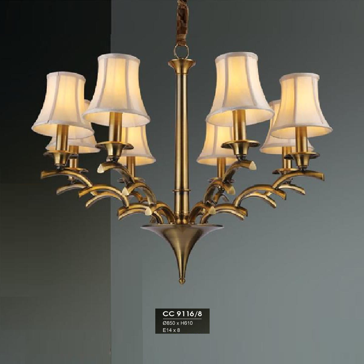 5. HF - CC 9116/8: Đèn chùm 8 tay, chao dù vải - KT: Ø950mm x H610mm - Bóng đèn E14 x 8 bóng