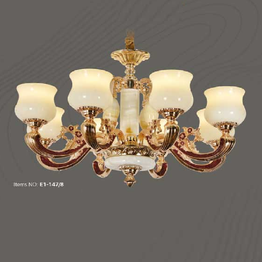 E1 - 147/8: Đèn chùm 8 tay, thân hợp kim, KT: Ø800mm x H450mm - Bóng đèn chân E27 x 8 bóng