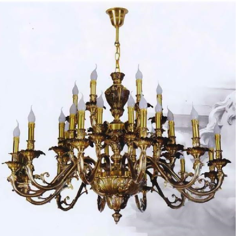 E - CD 766/24+6: Chùm đồng 30 tay - KT: Ø1050mm  x H1100mm - Bóng đèn chân E14 x 30 bóng