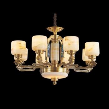 E - CD 182/8: Chùm đồng 8 tay, chao đá, khảm xà cừ - KT: Ø830mm x H550mm - Bóng đèn E14 x 8 bóng + Đèn LED SMD