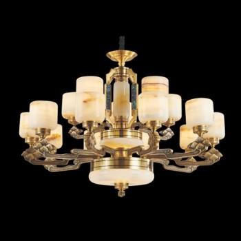 E - CD 184/10+5: Chùm đồng 15 tay, chao đá, khảm xà cừ - KT: Ø1020mm x H680mm - Đèn LED + Bóng đèn chân E14 x 15 bóng