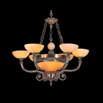 E - CD 188/8: Chùm đồng 8 tay, chao đá - KT: Ø1000mm x H850mm - Bóng đèn chân E27 x 11 bóng