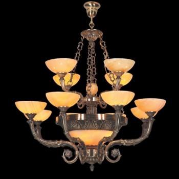 - Sản phẩm: E - CD 189/12: Chùm đồng 12 tay, chao đá - KT: Ø1000mm x H900mm - Bóng đèn chân E27 x 15 bóng