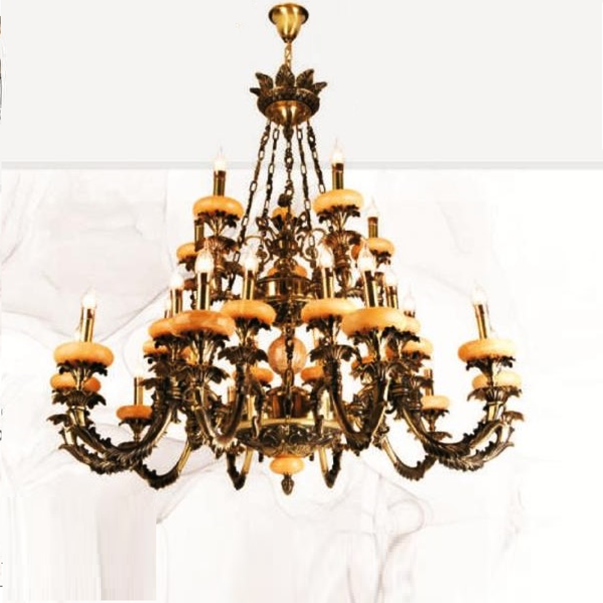E - CD - 323/24+12: Đèn chùm đồng 36 tay, chao đá - KT: Ø1200mm x H1080mm + 500mm - Bóng đèn E14 x 36 bóng