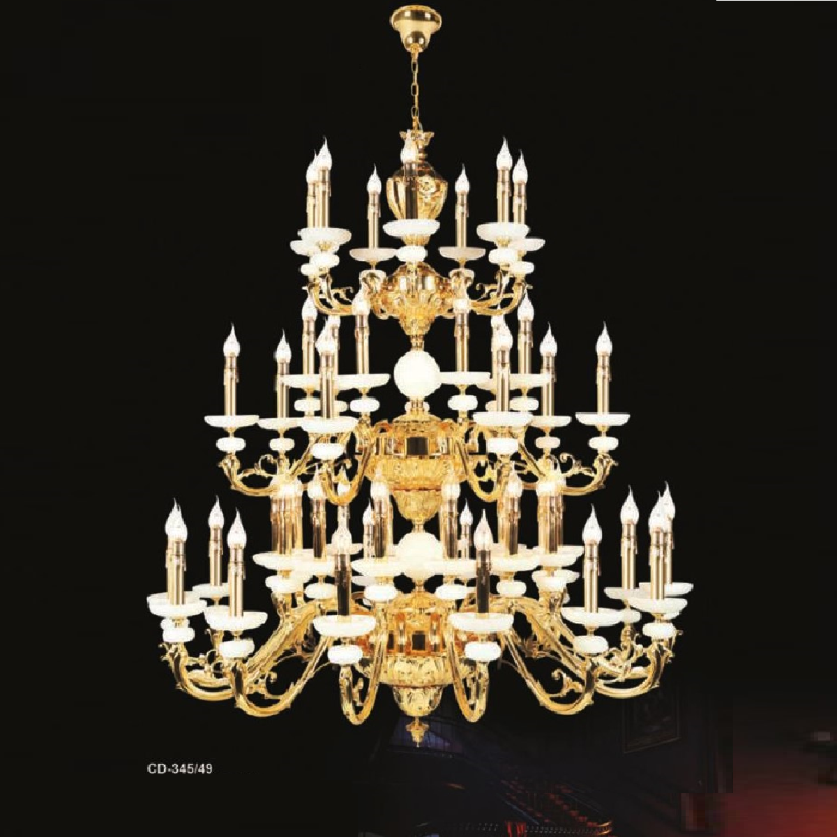 • Sản phẩm: E - CD - 345/49: Đèn chùm đồng 49 tay - KT: Ø1130mm x H1290mm + 500mm - Bóng đèn nến E14 x 49 bóng