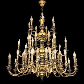 E - CD 766/24+6: Chùm đồng 30 tay - KT: Ø1050mm  x H1100mm - Bóng đèn chân E14 x 30 bóng