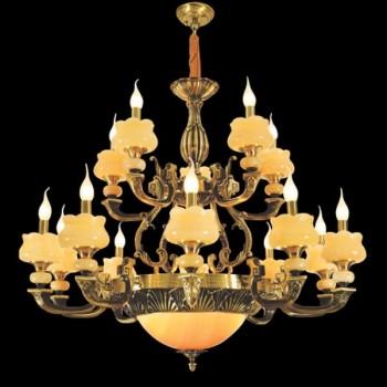 5. EU - CD 774/15: Chùm đồng 15 tay, chao đá có đèn LED - KT: Ø920mm x H800mm - Đèn chân E14 x 15 bóng + E27 x 3 bóng