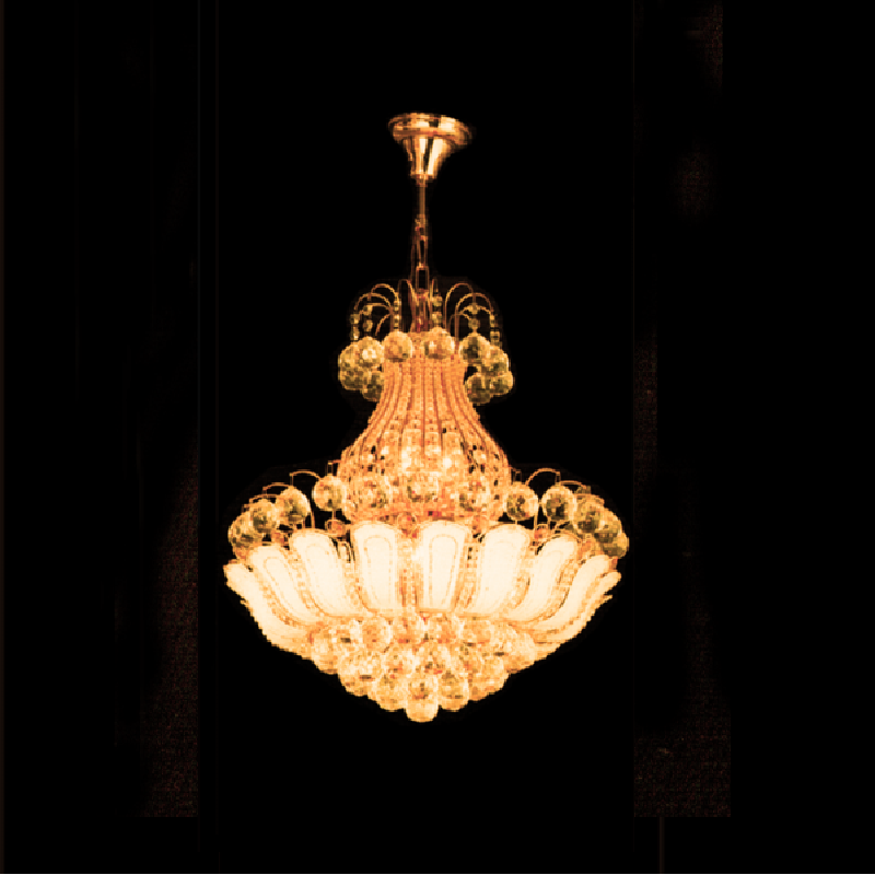 E - CFL - 48: Đèn chùm Phale - KT: Ø450mm x H600mm - 76 hạt Phale K9 - Bóng đèn E14 x 10 bóng