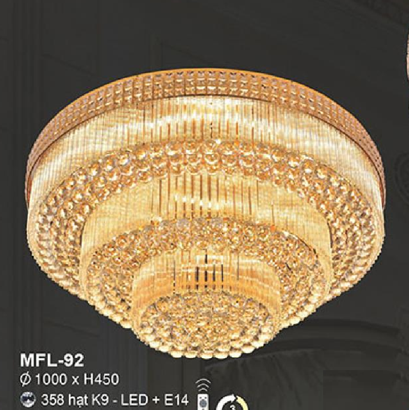 5. E - MFL - 92: Đèn áp trần Phale, 358 Hạt Phale K9 - KT: Ø1000mm x H450mm - Đèn LED đổi 3 màu + Đèn chân E14 - Remote