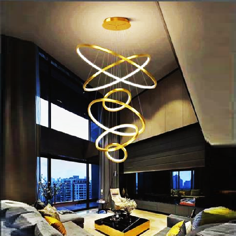 - Sản phẩm: EU - T - 36/6: Đèn thả 6 vòng LED - KT: Ø(200 + 400+600+800+1000+1200)mm x H2000mm - Đèn LED 298W x2 đổi 3 màu