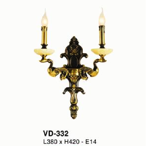E - VD - 927: Đèn gắn tường đồng đôi - KT: L220mm x H400mm - Bóng đèn nến E14 x 2 bóng