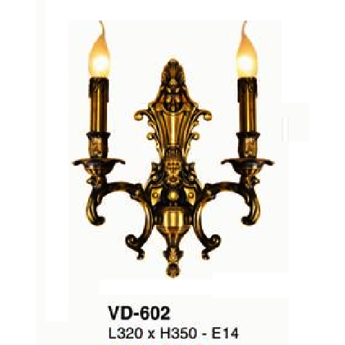 • Sản phẩm: E - VD - 602: Đèn vách đồng đôi - KT: L320mm x H350mm - Đèn chân E14 x 2 bóng